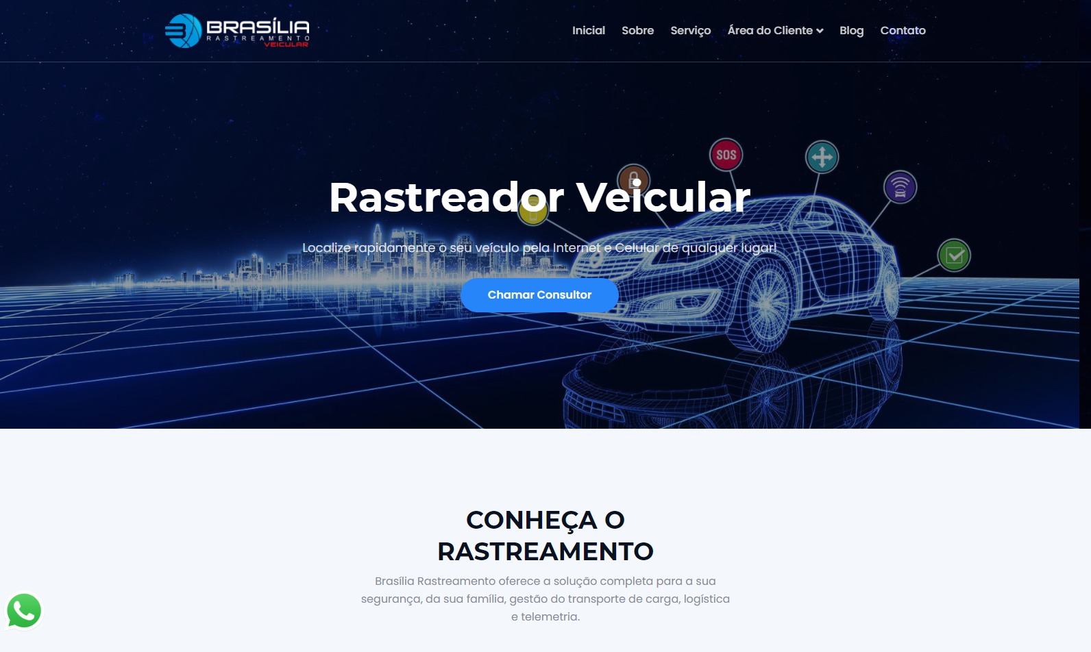 O projeto para Brasília Rastreamento foi rápido, conta com um sistema simples de administração para gestão do conteúdo. Tem sistema de atendimento, chat, whatsapp e etc.